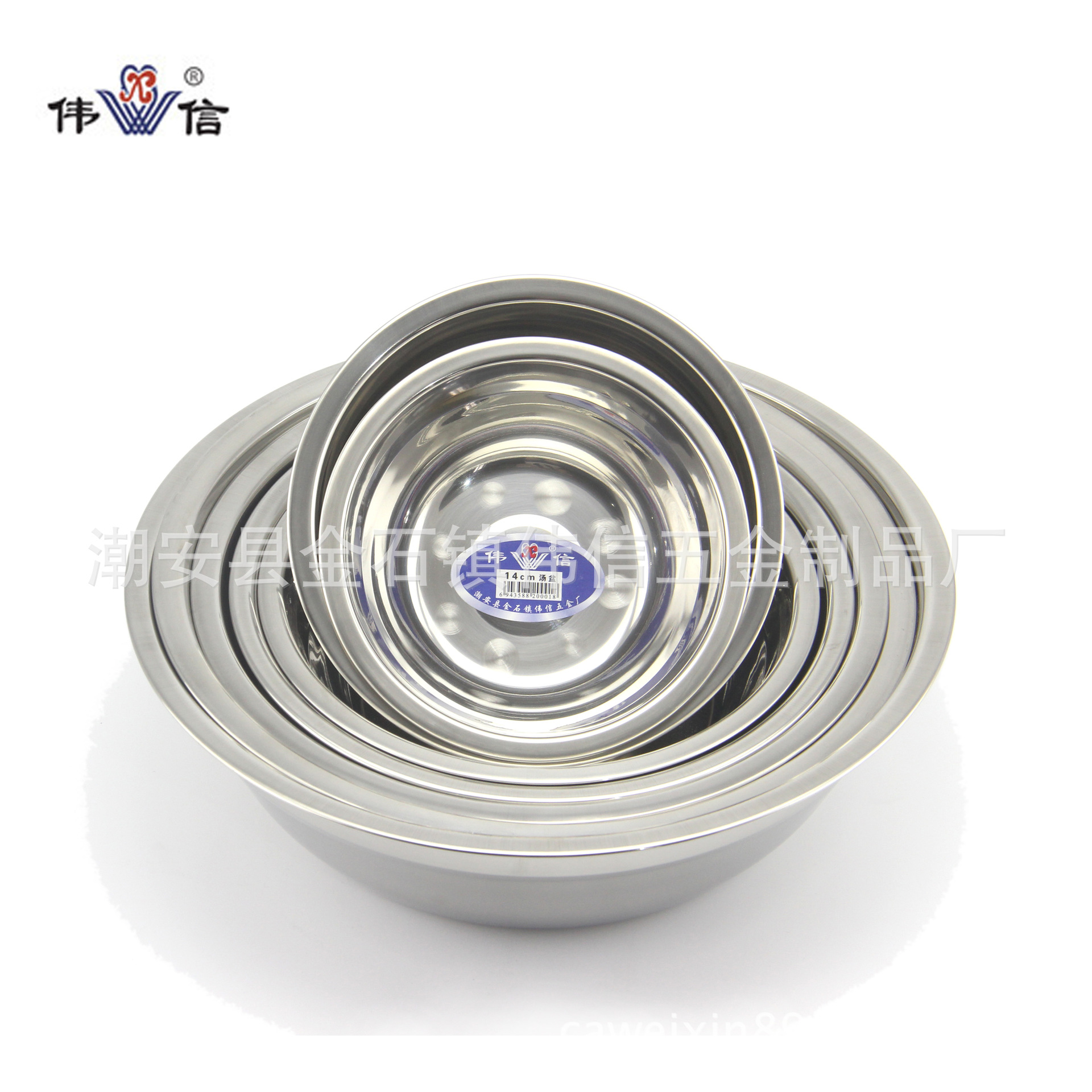 潮安縣金石鎮偉信五金制品廠,位于“不銹鋼王國”,專業生產不銹鋼盆類,有面盆、斗 盆、湯盆、圓盤、洗米篩等,其次還有不銹鋼雙層碗、口杯、快餐杯、飯盒、保鮮盒、密封罐等產品專業生產加工的營獨資企業。公司總部設在廣東省潮州市潮安區金石鎮廠頭村,潮安區偉信五金制品廠擁有完整、科學的質量管理體系。歡迎各界朋友蒞臨潮安區金石鎮偉信五金制品廠參觀、指導和業務洽談。