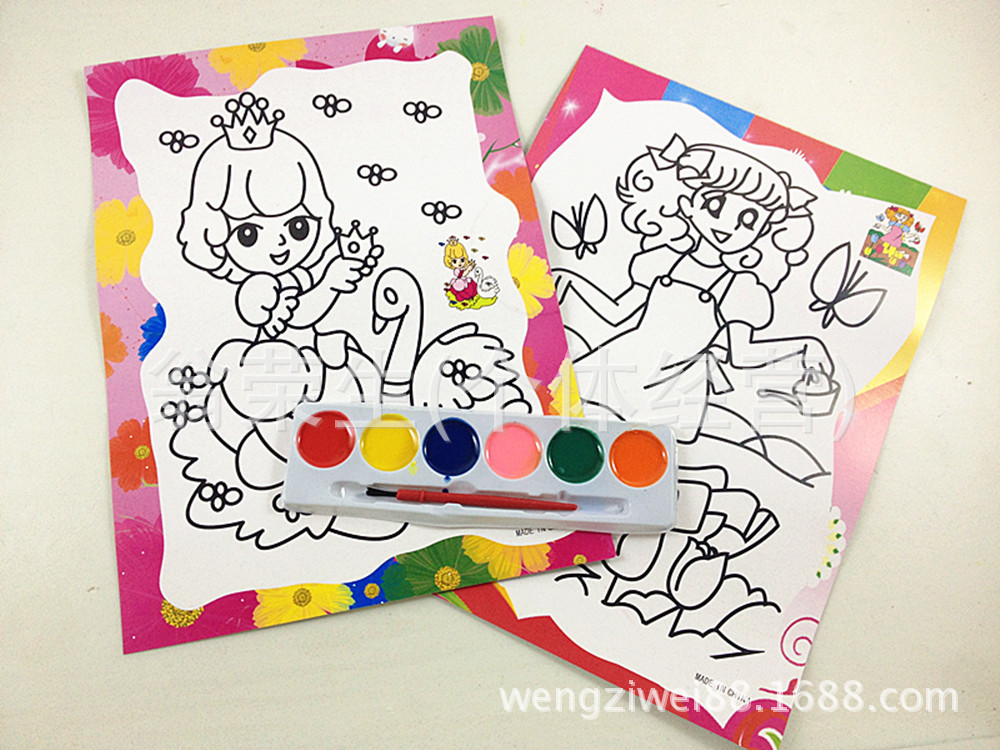 【配料】:每包2張不同圖。6色顏料,刷子1個