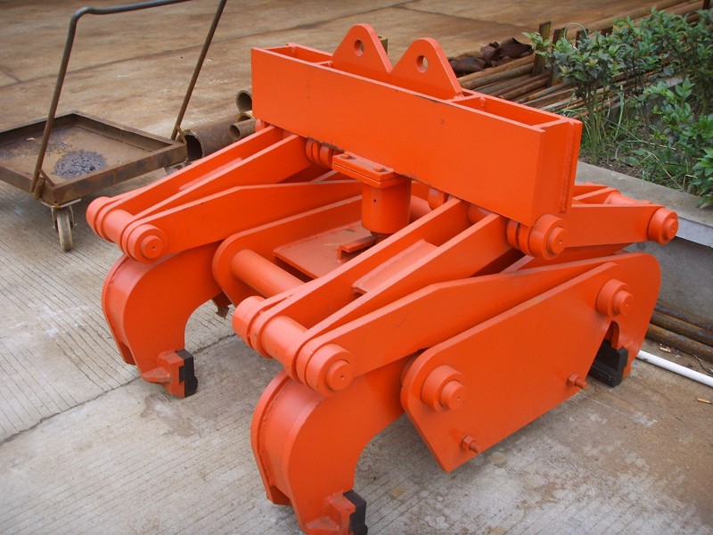鋼錠夾鉗運用杠桿原理起吊鋼坯,不需要動力源,靠旋轉自動閉鎖裝置或機械自動閉鎖裝置實行定位和鎖緊.可吊裝單層多層鋼坯,具有操作靈活安全可靠的特點。