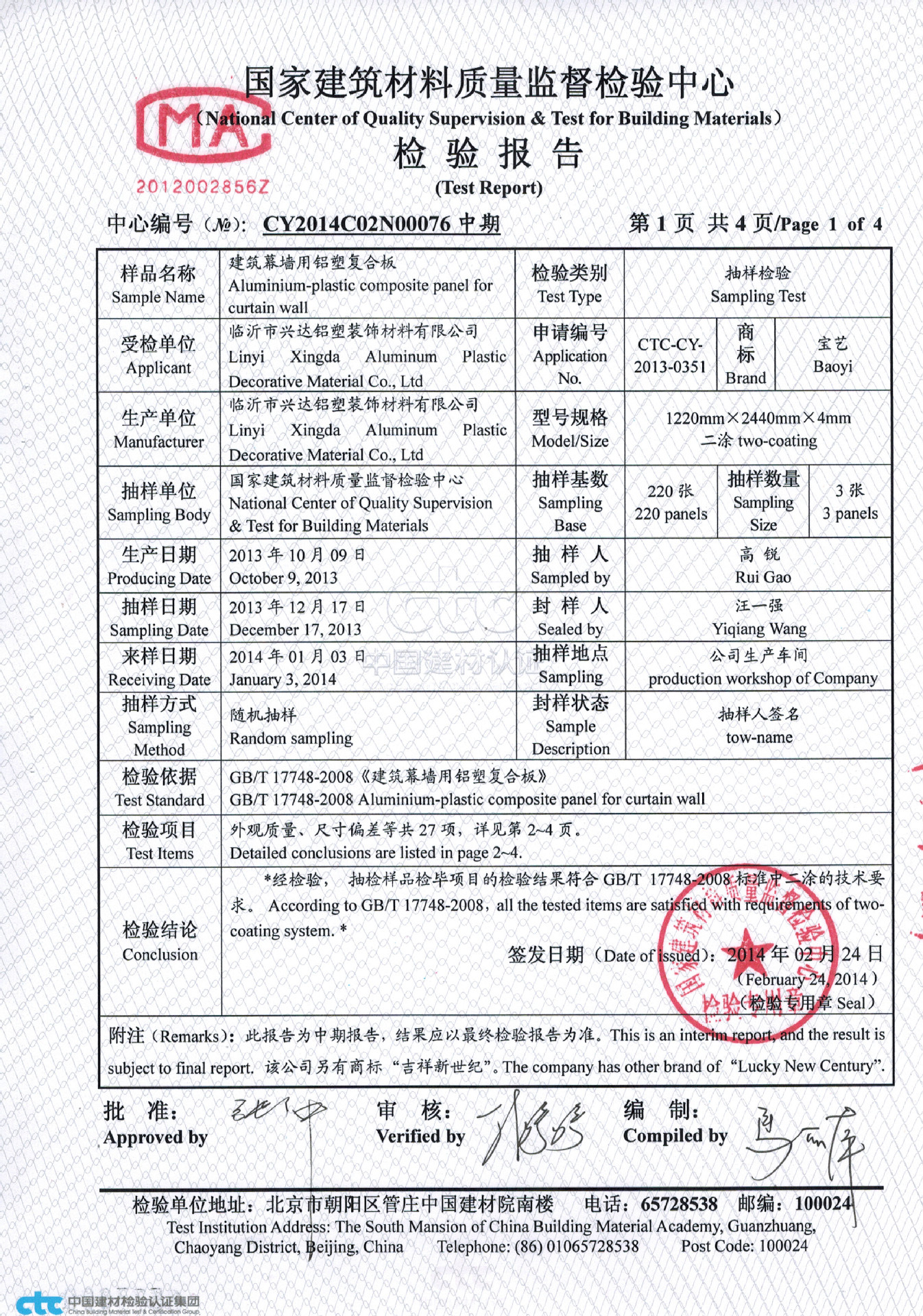 臨沂市興達鋁塑裝飾材料有限公司位于山東省臨沂市蘭山區朱保工業園,占地8.5萬平方米,本企業是一家制造高新技術鋁塑制品的專業廠家,是中國早的鋁塑板生產企業之一.