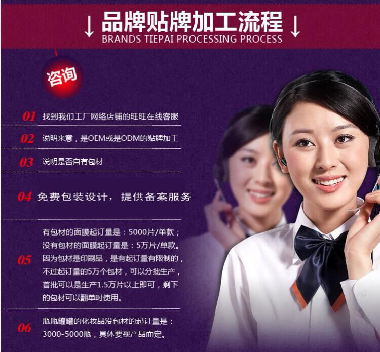 A:通俗的講,ODM服務就是***的服務,廠家主要了解客戶構思,然后結合自身經驗及市場實況,為客人從商標注冊、包才設計、包才采購、半成品灌裝、成品出貨等從產品開發到產品成形全部由廠家執行,客人只需專心做好市場的服務。小品牌ODM以“支”為單位報價,即一支多少錢;大品牌費用另議。(所有客戶提供的配方、特殊原料、包才、設計稿、操作指導等而導致的產品出現不穩定現像,廠家只承擔協助義務)