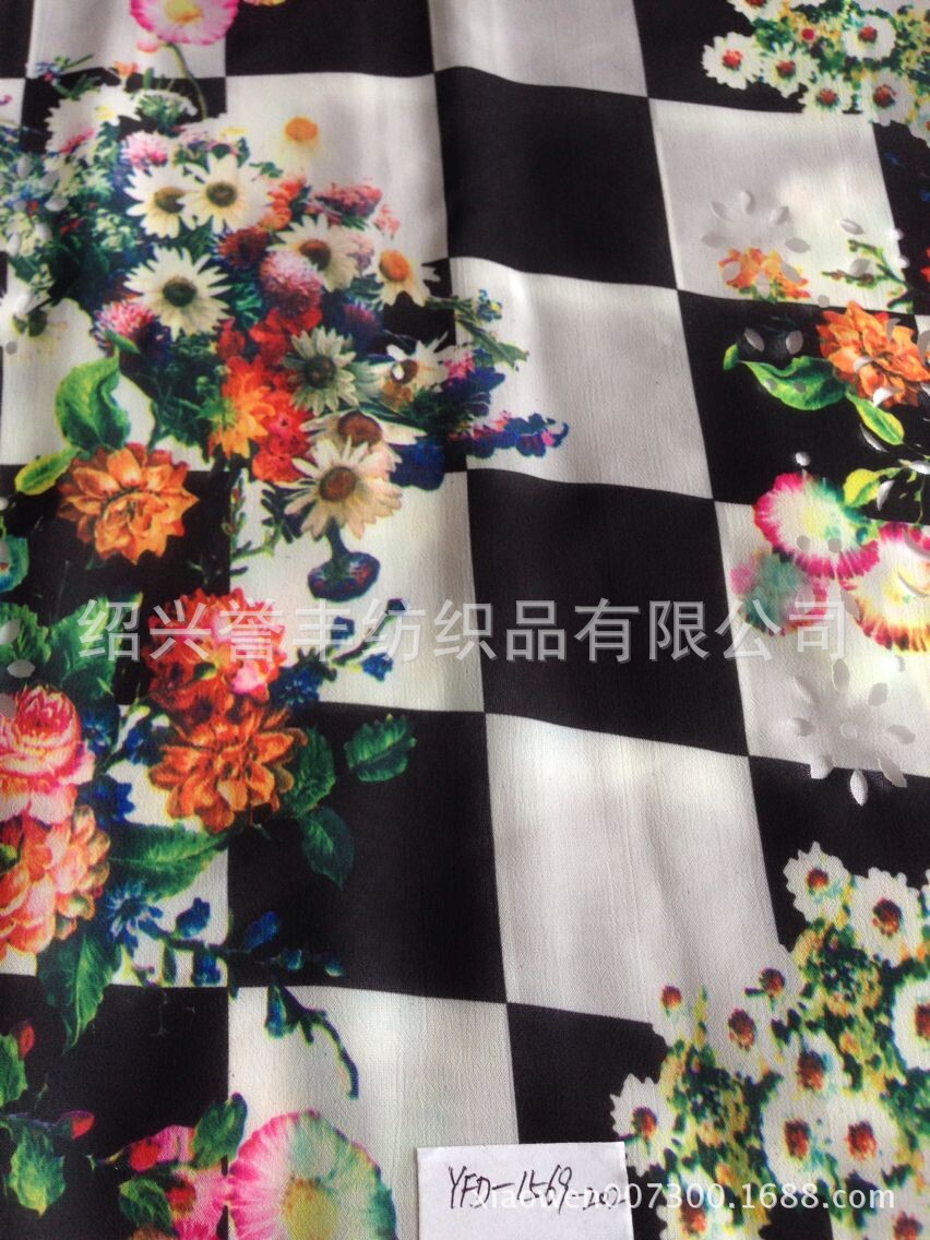 廠家批發 壓皺繡花布 滌綸美麗格印花激光繡花布YFD-1565