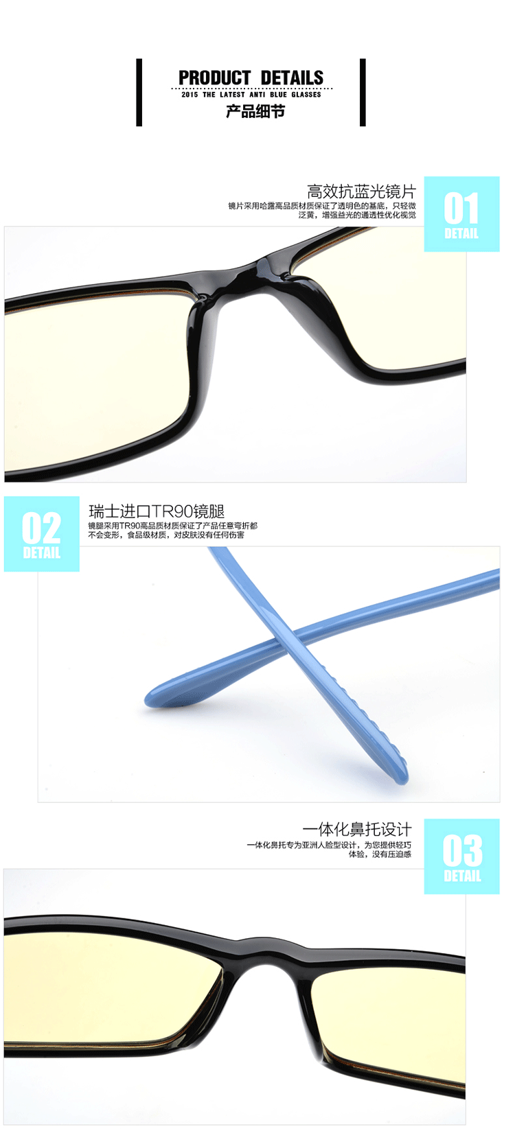 1、 重量輕:約少與板材框重量的一半,是尼龍材料的85%,減少鼻梁、耳朵負擔,使佩戴更加輕便舒適。