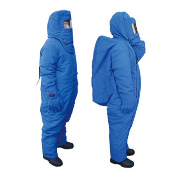 低溫防護服適用于低溫領域,適用溫度范圍為-160℃至-250℃,在低溫環境下使用,無變硬、變質影響,并能有效防御低溫液體的飛濺。整套裝備包含:低溫頭罩、低溫連體服、低溫手套、低溫靴子。